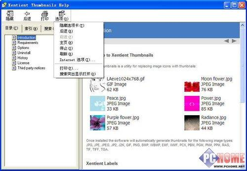 这款软件的最大特点是,安装完成并重起电脑以后,就可以使电脑中图片类的文件都显示成小型缩略图的形式出现,并且在开始菜单中会有Xentient Thumbnails Help文件(如图1)!