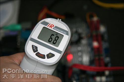 我们在拔掉北桥风扇后,让平台跑3D MARK 06半个小时,此时温度上升到68摄氏度,但系统并没有出现死机的情况。