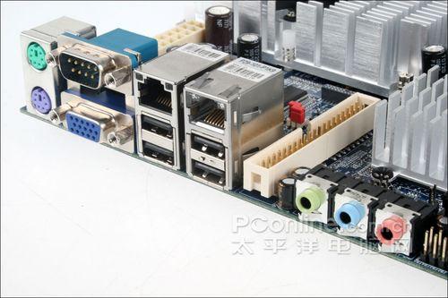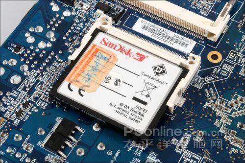 主板背面还提供了CF卡插槽和Mini PCI插槽,前者的作用时为用户安装固态硬盘,后者则主要是为用户安装无线网卡提供便利。