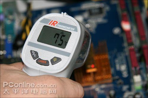 北桥依然是整块主板最热的部分,散热鳍片达到了75摄氏度。