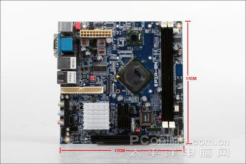 威盛 EPIA-SN主板采用Mini-ITX板型设计,大小仅为17CM×17CM,足以满足用户拔主板装入小型机箱的要求。主板采用的是VIA Nano L2100处理器,外频为200Mhz,倍频为9,主频达到了1.8G。主板基于VIA CN896+8251芯片组,其中CN896北桥芯片整合VIA Chrome9 IGP显示核心,支持DX 9.0B显示特效。