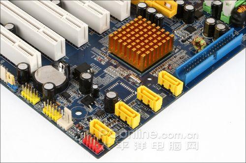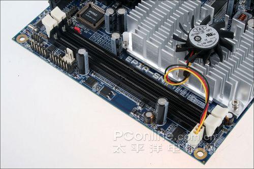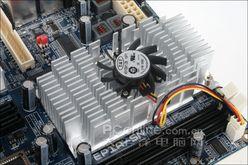 主板为CPU和北桥芯片搭载了统一散热器,并装上了小口径风扇,而南桥则采用了独立散热鳍片。