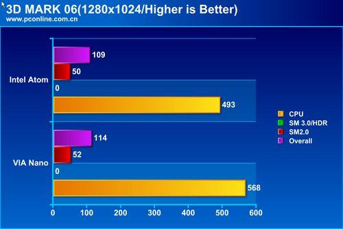 无论是Atom平台还是Nano平台,3D性能都非常弱,两者总分仅为一百余分,完全无法应付主流的3D游戏。同时因为不支持DX9.0C的缘故,它们均无法取得SM 3.0/HDR的分数。CPU分数方面,Nano要领先于Atom处理器。