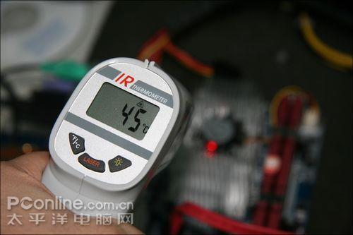 在空载情况下,Atom处理器表面温度并不高,仅仅为45摄氏度,这对于一款没有散热鳍片的CPU来说非常可贵。