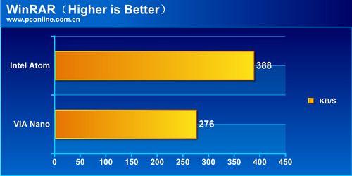 在WinRAR评测中,Intel Atom则反胜Nano处理,领先幅度超过30%。两者依然大幅度落后于目前主流的双核处理器。