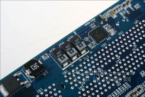 影驰DV945平台采用了独立的4pin +12V为CPU进行供电,滤波电路采用一相设计。