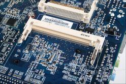 目前已经面世的Mini-ITX主板均采用双面贴片封装的形式,目的是在有限的PCB空间内安装更多原件。VIA EPIA-SN也不例外,主板背面封装了部分原件,其中就包括上图中的贴片式钽电容。
