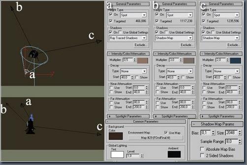 最终渲染,我在Max中使用了扫描线渲染。然后在Photoshop 中提取了3点光源,最后进行颜色校对以完善一些对比颜色和照明系统(图) :