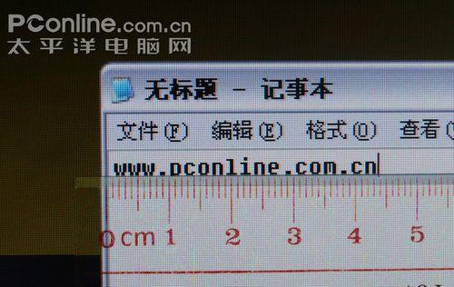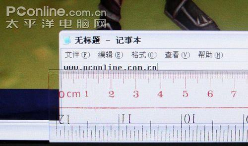 可以看到,在22寸(0.282mm点距)1680×1050分辨率下的默认记事本里这段网址的长度为4.35cm。