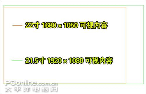 由于21.5寸产品的分辨率高达1920×1080,因此显示的总像素数要比22寸产品多出15%,所以在显示内容上也多出了15%。