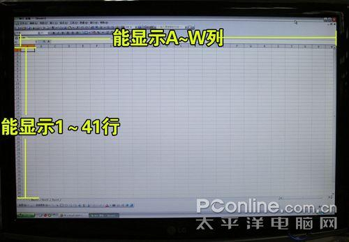 21.5寸由于分辨率上的优势可以显示A~Z列,比22寸多3列,42.5行比22寸多1.5行。
