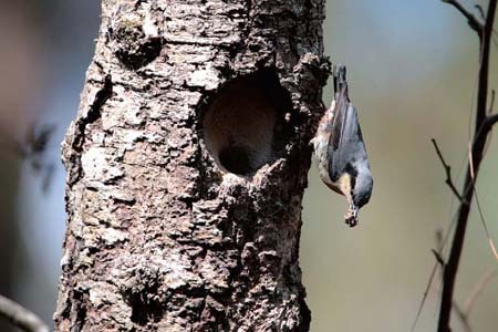 鸟类选择了合适的筑巢地点之后通常就地取材,建造“产房”和“育儿所”。一般而言,亲缘关系近的鸟类所用巢材也较相似,比如,多种啄木鸟会用碎木屑铺垫巢底,科鸟类大多数要用泥土来修饰洞口,鸠鸽类主要用枯树枝搭窝,雁鸭类常拔下自身的绒羽铺在巢中,鸫类的巢壁常有泥土加固,而燕科鸟类的巢几乎都是泥土和草根粘合筑成。因此,根据巢材的性质和巢址特点,能够大致判断出巢主所属的类群,这也是鸟类学家野外工作能力很重要的一个方面。