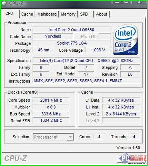 | 处理器 型号 | Intel Core 2 Quad Q9550 |