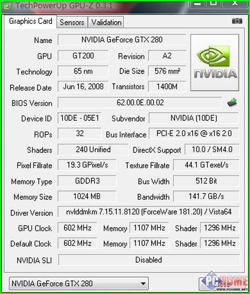 | 显示芯片 | NVIDIA GeForce GTX280 |