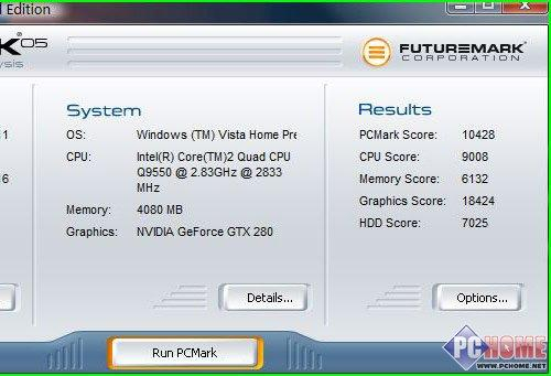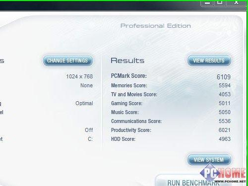 ◆ PCMark 05一向是整机性能的权威测试软件,测试完成后能够给出整个系统的详细评分,通过评分我们可以大体了解系统每个环节的具体性能表现。