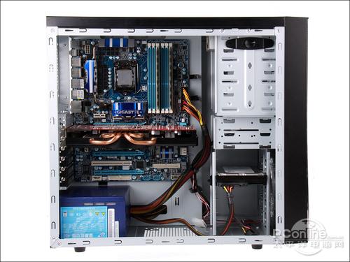 为了能更全面体验这款酷冷至尊 仲裁者II机箱,笔者把一套平台装进机箱内部,包括硬盘、主板、电源以及显卡。主板采用的是标准的ATX主板,而显卡采用的是较长板型的HD5870显卡,这样的配置能充分反映机箱内的空间大小,以及机箱内的各位置的兼容情况。
