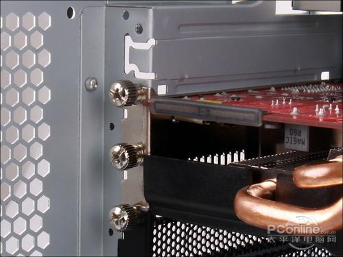 酷冷至尊 仲裁者II机箱的PCI槽部分都采用了手拧螺丝的安装方式,使安装板卡时不需外部工具辅助就可以完成板卡的安装,从而实现免工具安装。