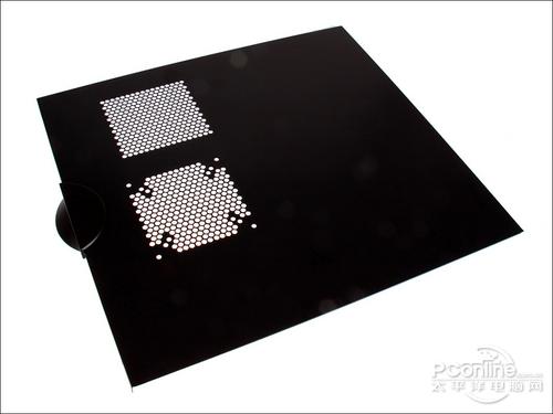 酷冷至尊 仲裁者II机箱大小规格为523X210X440mm,可以看到机箱侧板在CPU及显卡位置都具有大面积的散热网孔设计,显卡位置的散热网孔更设计为可以加装三种规格大小的机箱散热风扇安装孔,更好的加强显卡部分的散热能力。