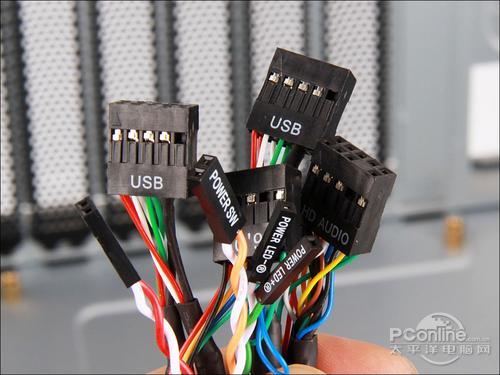 酷冷至尊 仲裁者II机箱前置USB、音频接口接线等连接线材都已预先排布好,并且附有清晰的文字说明,只要参照主板说明书上的说明对应插入相应位置即可。