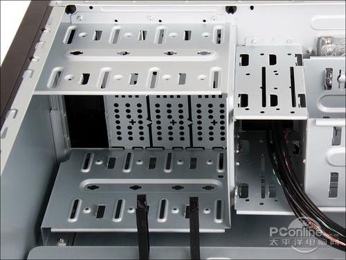 酷冷至尊 仲裁者II机箱共提供了4个3.5英寸硬盘安装位和5个5.25英寸光驱安装位,而且随机箱还附带了免工具安装扣具,可以满足大部分用户对设备的安装需求。