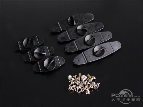酷冷至尊 仲裁者II机箱附件除提供了装机使用的螺丝外,还附带了安装光驱及硬盘的免工具安装扣具。