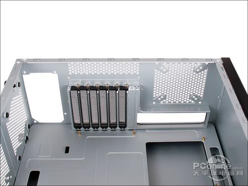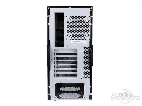 酷冷至尊 仲裁者II机箱背部在散热方面也做了不少的设计,除了主板上方的支持三种规格散热风扇的散热网孔及CPI插槽旁的散热网孔外,CPI插槽的挡板也由通风性能很好的冲孔金属网制成。