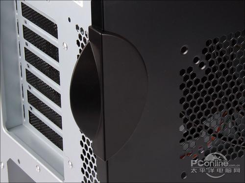 酷冷至尊 仲裁者II机箱侧板尾部还安装了半圆形的侧板把手,使用户在开启侧板时相比其他没有把手设计的机箱更易开启。