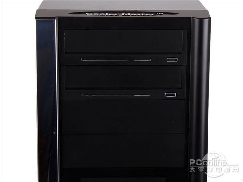 酷冷至尊 仲裁者II机箱在前面板具有4个光驱挡板设计,其中包括2个活动式光驱出仓口挡板,适合使用双光驱的用户,不会出现安装双光驱而造成破坏机箱外观一致的情况。