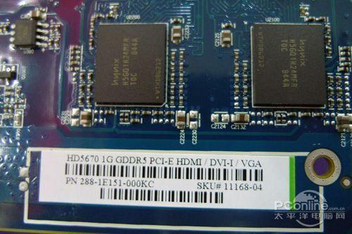 显存方面,蓝宝石 HD5670 1G GDDR5 白金版显卡采用现代GDDR5高速显存颗粒,组成1024MB/128bit显存规格,默认频率为775/4000MHz。