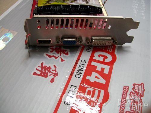 小影霸 GF4后羿版显卡在接口部分为我们提供了DVI+VGA+HDMI视频全接口,完全可以满足用户的外接输出需求。