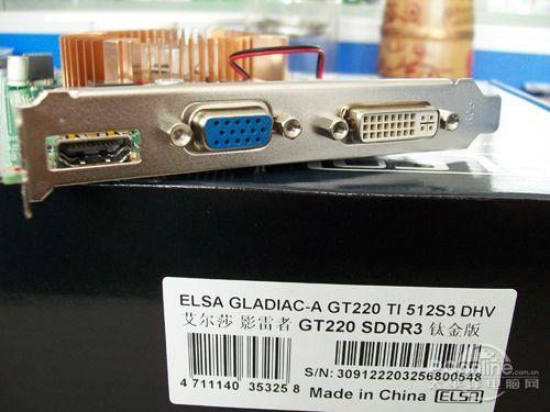 艾尔莎 影雷者-A 220GT TI 512S3 DHV 钛金版显卡在输出接口上采用了完整的HDMI+VGA+DVI的接口组合,HDMI接口支持音频和视频同步输出并不需要而外连接SPDIF接口,输出接口最大支持2560X1600分辨率。