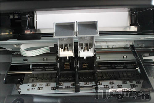 当需要更换墨盒时,只需要接通电源将前仓盖抬起,墨车就会自动移动到中间的位置。