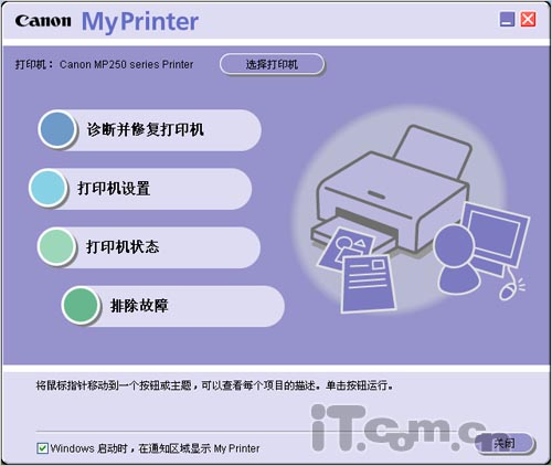Canon MyPrinter可以帮助用户掌握打印机的状态,并进行打印头清洗维护等操作。