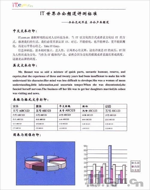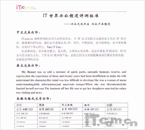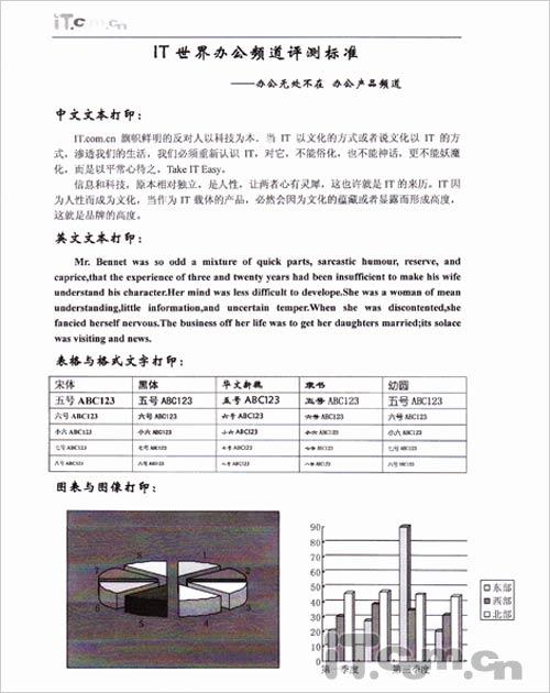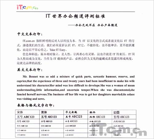 通过下面样张我们可以看出,快速模式下打印输出由于下墨比较浅,因此字体显得字迹较浅,但仍然十分清晰,并且拥有不错的省墨效果。标准和高两种模式文本打印效果相差不大,文本输出的黑度表现非常充分,打印的文本字迹锐利清晰。从图片输出效果来看,表现还是不错的,色彩过渡自然,色彩的还原度较好,这样的打印效果完全可以满足家庭用户的日常需求。