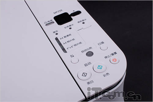佳能MP259喷墨一体机的控制面板位于机身顶部的右方,通过控制面板不仅可以选择纸张类型,还可以选择进行1-9页的连续复印,或者直接进行20页复印,非常方便。