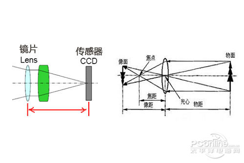 这里插一下解释:镜头是圆的,它的设计要参考传感器大小,说到底就是镜头的直径必须要大于或等于传感器的感光区域对角线长度才能正常使用,否则就会造成成像画面四个角有暗角现象。所以传感器感光区域小,镜头直径也可以小一些;反之,就要更大的镜头直径。