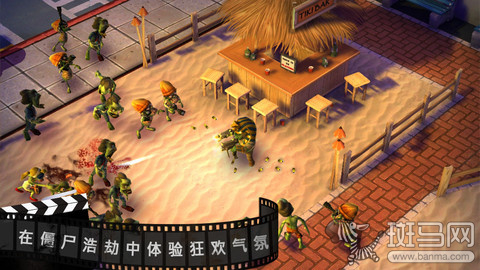 尽享令人兴奋的双摇杆射击动作游戏,在一波一波的疯狂僵尸群中披荆斩棘。利用20种强力的武器攻击,烧毁僵尸。受好莱坞启发而制作的卡通风格画面,11部 影片和10种独特的游戏模式,各种滑稽奇怪的装备自由混搭。但这并不是全部,游戏中还有更多僵尸片趣味动作情节。