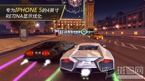 在极富盛名的Asphalt系列最新、最快、最抢眼的新作中,感受速度的火辣热力!驾驶来自世界上最具名望的制造商的60辆汽车,如:法拉利、兰博基尼、 阿斯顿马丁以及传奇级的DeLorean。整装待发,到全球15个真实城市的赛道上去一展风采,包括夏威夷、巴黎、伦敦、迈阿密和里约的全新赛道。充分利 用retina显示技术的全新图像,使每辆车和每条赛道都比以往更加精美。