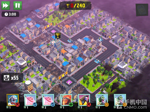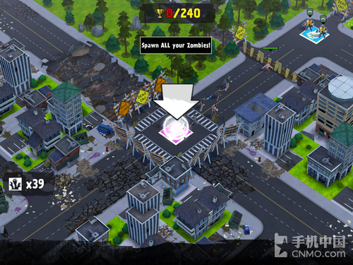 战斗一旦开始就会演变成即时战略玩法,你需要在指定的出兵点通过点击屏幕派出你的僵尸大军。这是你肯定会注意到屏幕下方的那些特殊僵尸单位,你需要拖拽他们至那些普通的僵尸身上并将其变异,一轮特技变身之后你也就拥有己方的英雄单位了哦,它们真的非常强力,根据类型安插在队伍的不同位置吧。
