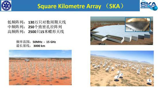 建在什么地方?我们定在非洲9国(中心在南非)和澳大利亚的西部。为什么选择这些地方?因为这些地方比较荒凉,而荒凉的地方是天文学家喜欢去的地方,没有干扰,非洲经济还不发达,澳大利亚西部人比较少。在非洲将布设高频阵列——“大锅”,基线可以到三千公里;在澳大利亚西部布设130万个小天线。