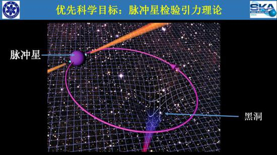 科学家还希望发现更多的脉冲星对来检验引力理论是否正确,我们知道第一例脉冲星对发现的时候获得了诺贝尔奖。我们特别希望看到一对脉冲星和黑洞,找到这一对的人一定特别伟大能获得诺贝尔奖。为什么呢?因为脉冲星的运转是椭圆轨道,无论它运动到黑洞的任何一个部位都可以精确检验黑洞的时空性质,从而对引力理论提供最精确检验。同时我们希望利用脉冲星做引力波探测,脉冲星发出周期性的脉冲,当引力波到来时,因其改变了时空的性质,便改变了脉冲到达的时间间隔,探测到这些我们便有机会看到超大质量的黑洞的脉冲星和引力波。