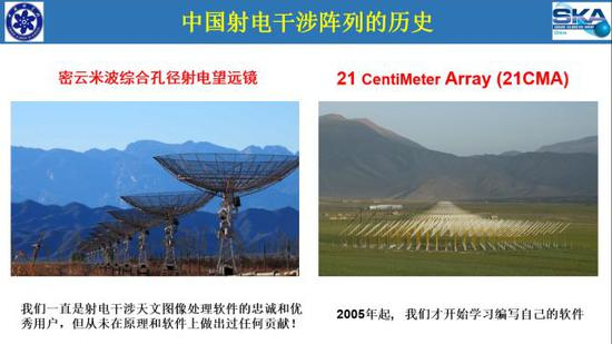 回顾世界干涉望远镜发展历史,在71年前澳大利亚人已经做到了。资本主义强国都是射电望远镜的强国。1983年,我国在密云建设了28面9米大小的射电孔径望远镜,于2000年退役,没有留下什么遗产。因为我们老一辈的科学家退休了,我们的软件用的是国外的,所以至今没有留下什么东西。2005年,我们在新疆布设1万个天线,开始摸索经验怎么处理SKA的数据,编写第一个属于自己的程序,历时10年时间。所有的年轻人都不愿意做这一件事情,因为它产出不了论文,所以没有办法毕业。