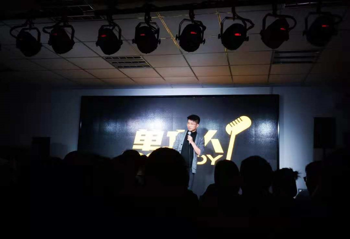 贾耗在单立人喜剧的舞台上进行当晚演出(摄影:冯倩倩)