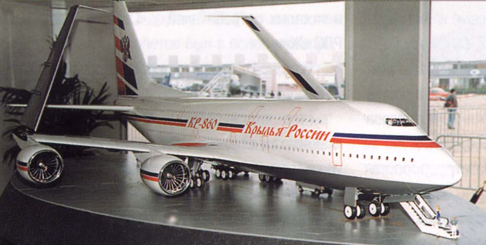根据相关资料记载,苏霍伊公司曾于1999年的巴黎航展上放出了苏霍伊KR-860客机的1:24比例模型,这是苏霍伊KR-860历史上首次、也是最后一次出现在公众视野中。为了降低该项目的整体投入成本,苏霍伊向中国和印度政府及航空器制造企业寻求合作,并成立了一家合资企业。可惜的是,当时的西方国家对俄罗斯制造的航空飞行器保持着一贯的“谨慎”态度,导致了俄罗斯研制的民用客机一直未能得到应有的市场。到了2001年,俄罗斯政府对这一架“几乎见不到未来”的飞机失去了耐心,最终决定将研发资金转移到其他项目上,苏霍伊KR-860从此渐渐消失在人们的视野中。