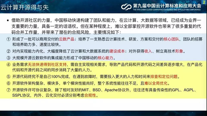 三是大规模开源云数软件的集成能力形成了中国移动的核心能力。