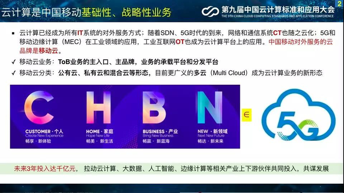 此外,钱岭特别指出,中国移动未来3年投入达千亿元, 拉动云计算、大数据、人工智能、边缘计算等相关产业上下游伙伴共同投入,共谋发展。