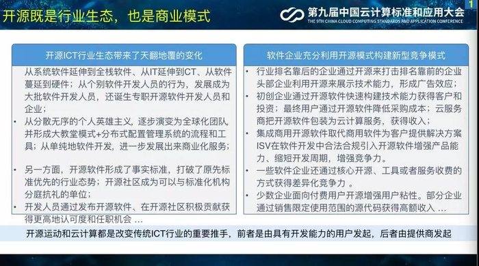 钱岭指出,开源运动和云计算都是改变传统ICT行业的重要推手,前者是由具有开发能力的用户发起,后者由提供商发起。在他看来,“没有开源就没有云计算。”
