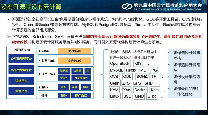 最后,钱岭总结道,“IaaS产品逐步由转向自主研发,提升效率;PaaS产品引入开源并加强在开源社区的影响力,同时构建自己的开源生态;SaaS产品由合作单位的开源风险和问题。”