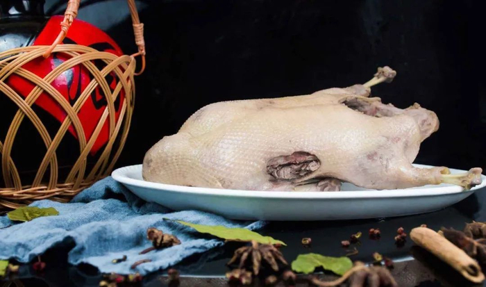 水中加入盐和香料,将鹅烧透。火候是盐水鹅的关键,火候掌握得好,肉才会嫩,不然会感到肉质很硬。