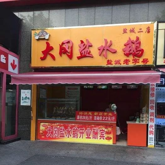 在盐城大街小巷上的卤菜摊上,总能看到“大冈盐水鹅”的字样,这已经成当地美食的著名品牌。